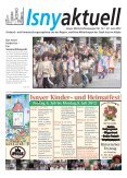 Isnyaktuell Isnyer Wirtschaftsanzeiger Nr. 13 / 27. Juni 2012 Einkaufs- und Veranstaltungsangebote aus der Region, amtliche Mitteilungen der Stadt Isny im Allgäu Das Isnyer Kinderfest - Ein Sommerhöhepunkt Die Vorfreude dauert ein ganzes Jahr, denn: nach dem Kinderfest ist vor dem Kinderfest. Ab dem 6. Juli bis 9. Juli hat das Warten ein Ende. Ganz Isny ist auf den Beinen. Ehemalige Isnyer zieht es wieder in die Heimat, um dieses Traditionsfest gemeinsam zu feiern. Am Sonntag bildet der große Festumzug, der um 14 Uhr beginnt, einen der Höhepunkte. Es ist ein herrlich bunter und fröhlicher Lindwurm, der sich mit ca. 120 Zugnummern in historischen Kostümen durch die Straßen der Stadt zieht. Foto: oh ANZEIGE