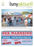 30 Amtsblatt Stadt Isny Isnyaktuell Isnyer Wirtschaftsanzeiger mit dem Amtsblatt der Stadt Isny Nr. 30 | 27. Juli 2016 Ab kommenden Freitag sorgt das Theaterfestival für eine große Portion Festivalflair Das Theaterfestival Isny bietet vom ab dem 29. Juli wieder viele kulturelle Leckerbissen aus den Bereichen aus Musik, Theater, Tanz, Varieté, Kabarett und Comedy in einer wunderbaren Zirkuszeltatmosphäre. Tagsüber laden verschiedene Workshops dazu ein sich kreativ auszuleben und sich mit Gleichgesinnten auszutauschen.. Foto: Isny Marketing ANZEIGE DER WAHNSINN nur Donnerstag, 28. Juli bis Samstag, 30. Juli SOMMER - RÄUMUNGSVERKAUF AUF LAUF- UND FREIZEIT- SCHUHE 20-60 % AUF ALLE BEKLEIDUNG (außer Unterwäsche und Socken) 50 %