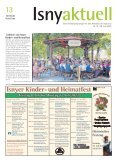 13 Amtsblatt Stadt Isny Isnyaktuell Isnyer Wirtschaftsanzeiger mit dem Amtsblatt der Stadt Isny Nr. 13 | 29. Juni 2022 Tradition: das Isnyer Kinder- und Heimatfest ISNY (jl) – Ein Aufatmen geht durch die Stadt: Endlich wieder vier ausgelassene Tage für Klein und Groß. Von Freitagnachmittag 8. Juli bis Montagabend, 11. Juli reißt der Zug der feiernden Kinder und Erwachsenen, Isnyern und Gästen aus nah und fern zum Festplatz am Rain nicht ab. Dort sorgen verschiedene Musikkapellen aus Isny und Umgebung, auch im großen Festzelt für beste Unterhaltung, während die Besucher unter den schattenspendenden Bäumen sitzen, Spaß an und in den Fahrgeschäften haben und sich mit Bekannten rund um den traditionellen Pavillon treffen. Auch wenn das Jubiläumsfest im Jahr 2020 ausfallen musste, ist beim Kinderund Heimatfest der Name Programm: Alles dreht sich um Kinder und Tradition. Mehr erfahren zum Programm auf Seite 6. Foto: Jeanette Löschberger ANZEIGE Isnyer Kinder- und Heimatfest Freitag 8. Juli 2022 14.00 Uhr Einweihung des Kinderfestbrunnens beim Espantor –gestiftet von Jakob Immler– 17:30 Uhr Kinderfest-Eröffnungsabend: „Glücksmomente“ – das Musikstudio App präsentiert musikalische Momente mit Schülern ab drei Jahren im Kurhaus am Park 19.30 Uhr Bieranstich mit der Stadtkapelle Isny bei schönem Wetter auf dem Festplatz 20.30 Uhr Einlass zur Dirndl- und Lederhosenparty mit „Rootsman & Fyah“ im Festzelt, Eintritt frei Vorband: „SBS“ Volksbank Allgäu-Oberschwaben eG Für die Menschen. Für die Heimat. www.isny-kinderfest.de Kinderfestplaketten als Sammlerstück für 5,– Euro, Eintritt für vier Tage Spass und gute Laune. Großes Festzelt, Weinzelt und Cocktailzelt, mit musikalischer Unterhaltung. Vergnügungspark mit modernen Fahrgeschäften Freitag, 8. Juli bis Montag, 11. Juli 2022 Samstag 9. Juli 2022 10.00 Uhr 30. Fußballturnier der Grundschulen im Adolf-Wälder-Stadion 12.00 Uhr Platzkonzert der Kinderfesttrommler vor dem Rathaus 14.00 Uhr Spiele und Aktionen für Kinder im Kurpark 14.30 Uhr Seniorennachmittag im Festzelt mit einem abwechslungsreichem Programm 16.00 Uhr Adlerschießen der Schüler der Isnyer Schulen beim Schützenhaus am Rain 16.00 Uhr Frauennachmittag bei Musik und Tanz im Weinzelt. Einlass ab 15.30 Uhr 17.30 Uhr Finale Adlerschießen der Schüler mit an schließender Proklamation des Adlerschützenkönigs beim Schützenhaus am Rain 19.00 Uhr Unterhaltungsmusik auf dem Festplatz mit der Musikkapelle Rohrdorf 20.00 Uhr Stimmungsabend im Festzelt mit der Musik kapelle Beuren, der Stadtkapelle Isny und der Musikkapelle Bolsternang Sonntag 10. Juli 2022 5.00 Uhr Weckruf durch die Reichsstadt-Fanfaren, die Stadtjugendkapelle und die Stadtkapelle 8.30 Uhr Morgenwanderung zum Kinderfestgottesdienst mit dem Schwäbischen Albverein Treffpunkt: Kurhaus am Park 10.30 Uhr Ökumenischer Gottesdienst anschließend Frühschoppen 14.00 Uhr Großer Festzug mit zahlreichen historischen Gruppen. Aufstellung: Leutkircher Straße und Achener Weg, Strecke des Festzuges (siehe Stadtplan) 15.00 Uhr Er & Sie Schießen mit der Armbrust beim Schützen haus am Rain 15.00 Uhr Unterhaltungsmusik mit der Musikkapelle Sibratshofen, je nach Witterung auf dem Festplatz oder im Festzelt 18.30 Uhr Finale Er & Sie Schießen beim Schützenhaus am Rain 19.00 Uhr Musikkapelle Maierhöfen, je nach Witterung auf dem Festplatz oder im Festzelt Montag 11. Juli 2022 9.00 Uhr Zunftfeier der Isnyer Handwerkerzunft im Festzelt am Rain (geschlossene Gesellschaft) 14.30 Uhr Unterhaltungsmusik auf dem Festplatz mit dem „Bergstüble-Duo“ (bei schlechtem Wetter im Festzelt) 15.00 Uhr 45. Kletterbaum und Kinderspiele beim Festplatz 18.00 Uhr Luftballonwettbewerb und Kinderfestabschluss im Adolf-Wälder-Stadion, es spielen die Kinderfesttrommler, die Reichsstadt- Fanfaren und die Musiker der Stadtkapelle 19.00 Uhr Stimmung mit dem „Gehrenbach Ensemble“ auf dem Festplatz 20.30 Uhr „ISNY, GEHMA STEIL?“ „DRDW/Da Rocka & da Waitler“ live beim Kinderfest 2022 •Buntes Festprogramm •Großes Festzelt •Vergnügungspark Historischer Festzug Sonntag, 10. Juli 2022 14.00 Uhr