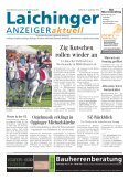 Laichinger ANZEIGERaktuell Die Wochenzeitung der Schwäbische Zeitung für Laichingen, Berghülen, Merklingen, Nellingen, Heroldstatt, Hohenstadt, Römerstein, Westerheim, Oberdrackenstein, Ingstetten und Justingen Jeden Mittwoch kostenlos in 12.000 Haushalten Mittwoch, 3. September 2014 Neu: Microneedling Behandlung von Narben Falten großporiger Haut Tränensäcken Rund 40 Kutschen sind beim Kutscher-Treff in Bühlenhausen zu sehen. ARCHIVFOTO Zig Kutschen rollen wieder an 24. Kutscher-Treff steht am Wochenende in Bühlenhausen an BÜHLENHAUSEN (cs) - Zum 24. Kutscher-Treff in Bühlenhausen haben sich für das Wochenende etwa 40 Kutscher mit ihren Pferdegespannen angemeldet. Zu sehen ist auch eine 100 Jahre alte Kutsche, die beinahe zerstört worden wäre. Das Treffen beginnt am Freitag, 5. September, um 20 Uhr im Bühlenhausener Kutschen- und Wagenmuseum. Am Samstag, 6. September, soll es nach dem Frühstück um 8 Uhr auf die Straßen gehen: Auf drei verschiedenen Geländestrecken zwischen sieben und 18 Kilometern können die Kutscher ihre Wagen von Pferden über die Alb ziehen lassen. Am Sonntag, 7. September, werden um 13 Uhr nochmals alle Gespanne durch Bühlenhausen rollen. Vor dem Kutschen- und Wagenmuseum können die Wagenlenker ihre Fähigkeiten auf einem Parcours mit Wassergraben und sonstigen Hindernissen austesten. Für Verpflegung wird im Kutschen- und Wagenmuseum gesorgt sein. Insgesamt sollen etwa 350 Menschen Platz zum Essen und Trinken finden. Wie Helmut Fried an die 100 Jahre alte Kutsche kam, lesen Sie in der heutigen Ausgabe der „Schwäbischen Zeitung“. In dem Artikel verrät Helmut Fried, wie er die Kutsche vor der Zerstörung rettete. Museum am Sonntag geöffnet LAICHINGEN (la) - Das Laichinger Weberei- und Heimatmuseum bei der Albanskirche an hat am Sonntag, 7. September, von 13 bis 17 Uhr geöffnet, Die Besucher können in längst vergangene Zeiten eintauchen und erfahren allerlei über das Handwerk der Leinenweber. Albverein feiert Kastanienfest MACHTOLSHEIM (la) - Der Machtolsheimer Albverein lädt am Sonntag, 7. September, um 11 Uhr zum Kastanienfest ein. Gefeiert wird unter den Kastanienbäumen in der Ortsmitte. Zum Mittagessen, zu Kaffee und Kuchen sowie zum gemütlichen Beisammensein lädt der Albverein ein. Heute in der SZ LAICHINGEN (sz) - Wegen ihres jüngsten Erfolgs bei den Olympischen Jugend-Spielen ist Alina Reh am Dienstagabend im Alten Rathaus empfangen worden. Doch wohin führt sie ihr Weg noch? Darüber, und warum die 17-Jährige im deutschen Nationalteam nur „Jimi“ genannt wird, hat sich SZ-Redakteur Johannes Rauneker mit dem deutschen Nachwuchs-Cheftrainer Jörg Peter beim deutschen Leichtathletikverband unterhalten. Orgelmusik erklingt in Oppinger Michaelskirche Kirchenmusikdirektor Albrecht Weberrußspielt Orgelmusik vom Frühbarock bis zur Moderne OPPINGEN (la) - Kirchenlieder erklingen am Samstag, 6. September, in der Oppinger Michaelskirche. Kirchenmusikdirektor Albrecht Weberruß aus Ulm spielt Orgelmusik vom Frühbarock bis zur Moderne. Im Zentrum stehen Choralbearbeitungen zu bekannten Kirchenliedern. Das Konzert an der Orgel von Johann Viktor Groul (1826) beginnt um 16 Uhr, der Eintritt ist frei. Nachdem das Instrument neu gestimmt ist, kommt der schöne Klang der Orgel gut zur Geltung. SZ-Rückblick Die Woche in der Schwäbischen Zeitung LAICHINGEN (sz) - Bücherei wird zu Spiele-Arena für Senioren. Neue Veranstaltungsreihe gemeinsam mit dem Förderverein in Laichingen ab Ende September. NELLINGEN (sz) - Großer Preis von Nellingen ausgefallen. Erstmals in der Geschichte des Bauernrennens wurde das Rennen wegen des Regens abgesagt. LAICHINGEN (sz) - Verregnete Leinenwebertour reißt Minus in MSC-Kasse. Mehr Informationen finden Sie jeden Morgen in der Schwäbischen Zeitung. Sie können ein kostenloses 14-tägiges Probeabonnement anfordern unter der Telefonnummer 0180/2008001. ANZEIGE Fenster und Haustüren Bauherrenberatung Samstags von 7.30 - 14.00 Uhr Kostenlos und ganz unverbindlich. Verkauf nur über den Fachhandel. Wegen Umbau des Ausstellungsraumes, bitten wir um telefonische Anmeldung! KNEER GmbH · Fenster und Türen · Riedstraße 45 · 72589 Westerheim · Telefon 0 73 33/83-0 · Telefax 0 73 33/83-40 · Mail: info@kneer.de