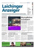 Jeden Mittwoch kostenlos in 11 500 Haushalten Mittwoch, 4. August 2010 Laichinger Anzeiger Die Wochenzeitung der Schwäbischen Zeitung für Laichingen Berghülen, Merklingen, Nellingen, Heroldstatt, Hohenstadt, Römerstein, Westerheim, Oberdrackenstein, Ingstetten und Justingen Musik und Pferde Countryfest auf Saylers Albranch HOHENSTADT (la) Am Wochenende 7. und 8. August, findet auf Sailer’s Alb-Ranch das schon traditionelle Countryfest mit Live- Musik und der Wanderritt mit Oldtimertreff statt. Auf der Reitanlage gegenüber der Funkstation im Waltertal kommen am Samstag Abend Freunde der Countrymusic auf ihre Kosten. SAV Albverein wandert bei Bad Urach BLAUBEUREN (la) – Am Samstag, 7. August, wandert der Schwäbische Albverein Blaubeuren von Bad Urach zum Stahlecker Hof. Dazu treffen sich die Teilnehmer mit PKW um 9.30 Uhr auf dem Parkplatz bei der Sparkasse Blaubeuren. Der zweite Treffpunkt ist der Eingang zum Parkplatz Kurgebiet in Bad Kultur Nur noch an einem Wochenende können Gäste das außergewöhnliche Ambiente der Sommerbühne genießen. Foto: arc Blautopfbühne im Endspurt BLAUBEUREN (la) – Einen Monat lang hat die Blautopfbühne an den Wochenenden ein tolles, abwechslungsreiches Programm geboten. Nun endet die diesjährige Saison. Am Freitag, 6. August, sind ab 20 Uhr vier Herren und eine Dame von der „Cello Mafia“ zu hören. Clevere musikalische Arrangements und eigenwillige Komik begeistern seither eine große Fangemeinde. Karten im Vorverkauf 15 Euro, ermäßigt zwölf Euro, Abendkasse 18 Euro, ermäßigt 15 Euro. Am Samstag, 7. August, um 20.30 Uhr gastiert das Au- GuSTheater Neu-Ulm mit „Versteh einer die Frauen“. Das Stück von Michael Stoltze ist mal wieder so richtig aus dem Leben gegriffen: Arthur Berger könnte ganze Bücher mit dem füllen, was er bei Frauen nicht versteht. Diese Komödie unterhält im besten Sinne.. Karten im Vorverkauf 15 Euro, ermäßigt zwölf Euro, Abendkasse Am Sonntag, 8. August, spielt ab 19.30 Uhr das 12köpfige Blechbläserensemble „SemperBrass“, das aus Solisten der Sächsischen Staatskapelle Dresden sowie der Dresdner Philharmonie gegründet wurde. Karten im Vorverkauf kosten 25 Euro, ermäßigt 20 Euro, An der Abendkasse 29 Euro, ermäßigt 24 Euro. Heute in der SZ Fernweh besiegt Finanzkrise LAICHINGEN (top) – Weltwirtschaftskrise, Euroschwäche, Inflationsgefahr. Was wie ein Bewerbungsrennen zum „Unwort des Jahres“ aussieht, ist knallharte Realität. Doch was bewirkt all das in der heimischen Tourismusbranche? Laichingen setzt seine Hoffnungen mittelfristig auf das neue Biosphärenreservat. Servicehaus Sonnenhalde Künstler stellen aus WESTERHEIM (la) – Wieder stellen Künstler aus Laichingen und Umgebung ihre Werke im Servicehaus Sonnenhalde aus. Elisabeth Kern, Claus Schrag und Harald Kern stellen vom Sonntag, 8. August, bis zum 21. November ihre Werke unter der Überschrift „Visionen“ in den Gängen des Servicehauses aus. Die Vernissage findet am Sonntag, 8. August, um 15 Uhr. Die Einführung übernimmt Finny Staudenmayer, Alex Prähofer bietet musikalische Untermalung auf der Gitarre. Die Besucher können sich auf eine Ausstellung freuen, die viele Facetten der unterschiedlichen Künstler zeigt. Die Woche in der Schwäbischen Zeitung SZ-Rückblick ◆ LAICHINGEN - Am Mittwoch haben auch in Laichingen die Schulferien begonnen. Doch Pause gibt es keine. Jetzt wird gearbeitet. ◆ DONNSTETTEN – Hunderte Besucher sind am Wochenende zum traditionsreichen Dorfhock, der Gugelfuhr, nach Donnstetten gekommen. Alle Ortsvereine boten ein tolles Programm. Mehr Informationen finden Sie jeden Morgen in der Schwäbischen Zeitung. Sie können ein kostenloses 14- tägiges Probeabonnement anfordern unter der Telefonnummer 0180/2008001. Anzeige