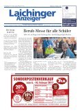 Jeden Mittwoch kostenlos in 12.500 Haushalten Mittwoch, 8. Februar 2017 Die Wochenzeitung der Schwäbischen Zeitung für Laichingen, Berghülen, Merklingen, Nellingen, Heroldstatt, Hohenstadt, Römerstein, Westerheim, Oberdrackenstein, Ingstetten und Justingen Marktplatz 15, 89150 Laichingen Telefon 07333/5433 zahnarzt-schleifer@t-online.de Zahngesund durchs Jahr! Die Woche in der SZ FELDSTETTEN (sz) - Standhaft in Zeiten des Aufruhrs. Feldstetter Bibelwoche beginnt lebendig und vielversprechend. LAICHINGEN (sz) - Zauberhafter Mittag für Helfer. Gut besuchter Jazz-Brunch der Bürgerstiftung am Sonntag. HEROLDSTATT (sz) - Kahlschlag wirft Fragen auf. Baumfällungen in Heroldstatt ärgern und verwirren Bürger. Heute in der SZ LAICHINGEN (sz) - Stets auf der Höhe der Zeit. Uhrmachergeschäft Rauscher in der Weite Straße schließt. Mehr Informationen finden Sie jeden Morgen in der Schwäbischen Zeitung. Sie können ein kostenloses 14-tägiges Probeabonnement anfordern unter der Telefonnummer 0751 / 2955 5555. Berufe-Messe für alle Schüler Infos in Laichingen am Samstag über Ausbildungsmöglichkeiten LAICHINGEN (la) - Zum achten Mal in Folge findet in Laichingen die Informationsmesse für Schüler und Schülerinnen sowie deren Eltern statt. Zahlreiche Unternehmen aus der Region, Institutionen und Eltern der Schulen stellen am Samstag, 11. Februar, von 9 bis 12 Uhr, in der Erich-Kästner-Gemeinschaftsschule, Max-Lechler- Straße 2, über 130 Berufe vor. Die Jugendlichen können sich über Ausbildungswege, tägliche Aufgaben und Herausforderungen der vielfältigen Berufe informieren. Dabei wird viel geboten: Von „A“ wie Altenpfleger bis „Z“ wie Zollbeamter ist alles dabei. Auch weiterführende Schulen aus Ulm und Ehingen warten mit zahlreichen Informationen und erfahrenen Fachkräften auf, um die Schüler und Schülerinnen der achten, neunten und zehnten Klassen über berufliche Möglichkeiten Schüler können sich am 11. Februar in der Erich-Kästner-Schule informieren. nach dem Abschluss zu informieren. Organisiert wird die „Berufsorientierung an Schulen“ durch Eltern der Erich-Kästner-Gemeinschaftsschule und Eltern der Laichinger Anne- Frank-Realschule. Unterstützt ARCHIVFOTO werden sie dabei von den Schulleitungen, den Sekretariaten und den Hausmeistern der Schulen. Für die Verpflegung ist ebenfalls gesorgt. Die Bewirtung der Messe übernehmen die Klassen 7 der Erich-Kästner-Gemeinschaftsschule. Die Veranstalter freuen sich auf zahlreiche interessierte Schüler, Schülerinnen und Eltern aller weiterführenden Schulen im Raum Laichingen, so dass die Messe für alle Beteiligten ein Erfolg wird. ANZEIGE SONDERPOSTENVERKAUF vom 6. - 10. Februar 2017 20% 10 % Rabatt auf Musterproduktionen & Sonderposten * Große Auswahl, günstige Preise! 10% Rabatt auf das reguläre Sortiment UNSERE TOP-ANGEBOTE * : Spätzle Bunte Spätzle Kartoffelnudeln Spinatspätzle Bandnudeln Balance Diverse Sonderposten Öffnungszeiten: Montag bis Freitag von 10 bis 17 Uhr Franz Tress GmbH & Co. KG • Dottinger Straße 69 • 72525 Münsingen • Tel. 07381 / 93 92 55 • www.tress.de Abzüglich 20% Rabatt! Ganzjährig geöffnet!