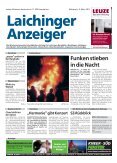 Jeden Mittwoch kostenlos in 11 500 Haushalten Mittwoch, 9. März 2011 Laichinger Anzeiger Die Wochenzeitung der Schwäbischen Zeitung für Laichingen Berghülen, Merklingen, Nellingen, Heroldstatt, Hohenstadt, Römerstein, Westerheim, Oberdrackenstein, Ingstetten und Justingen Vorschau „papas“ spielen in der Berghalle HEROLDSTATT (la) - Zur Ü30- Tanzparty mit „the papas“ lädt der SC Heroldstatt für Samstag, 26. März, in die Berghalle ein. „Back to the roots“ – so könnte das Motto dieser Ü30-Party lauten. Ab 20 Uhr gastieren an diesem Abend die legendären „papas“ in der Berghalle. Seite 3 Planetarium Blicke ins Weltall LAUPHEIM (tf) – Anhand fantastischer Himmelsaufnahmen berichtet Gero Rupprecht von der europäischen Südsternwarte (ESO) in einem Vortrag am 12. März um 20.15 Uhr im Laupheimer Planetarium aus erster Hand von der Arbeit mit modernen Riesenteleskopen. Seite 4 Funkenfeuer Feuer üben eine große Faszination aus. LA-Foto: su Funken stieben in die Nacht REGION (la) – In vielen Gemeinden auf der Laichinger Alb werden am kommenden Wochenende die Funkenfeuer lodern. Der Albverein Westerheim lädt zum traditionellen Funkenfeuer neben der Albhalle ein. Treffpunkt ist am Samstag, 12. März, am Rathaus, dort werden Fackeln verkauft. Start des Fackellaufs ist um 18 Uhr, es geht über den Sellenberg zur Feuerstelle neben der Albhalle. Die Kinder dürfen gemeinsam auf Kommando das Feuer entzünden. Fürs leibliche Wohl ist mit warmem Punsch, Glühwein, heißes Saiten und süßen Funkenkrapfen gesorgt. Auch die Karbatschengruppe wird eine Einlage mit den Peitschen geben Die Ennabeurer Ortsgruppe des Albvereins trifft sich um 18.30 Uhr an der Bushaltestelle in der Hülbenstraße. Dann geht es mit Fackeln hinauf zum Steinleseplatz bei den Windrädern, wo die Kinder den Reisighaufen anzünden dürfen. Funkenfeuer gibt's auch am Samstag, 12. März, in Suppingen ab 18.30 Uhr bei der Schinderwasenbuche und in Machtolsheim ebenfalls am Samstag, 12. März, ab 18.30 Uhr beim Sportplatz. Am Sonntag, 13. März, lodern auch die Flammen in Merklingen, die Jugendfeuerwehr entzündet bei Einbruch der Dunkelheit das Funkenfeuer in der Nähe des Bleichäusles. Heute in der SZ Claus bleibt an der Spitze LAICHINGEN (hjs) – Wahlen bildeten einen Schwerpunkt bei der Jahreshauptversammlung der Regionalgruppe Laichingen der West-Ost-Gesellschaft. Unverändert bleibt die Vorstandschaft, die Vorstandsmitglieder wurden alle einstimmig wiedergewählt und so in ihren Ämtern bestätigt. Vorsitzender ist weiterhin Joachim Claus. Vorschau „Harmonie“ gibt Konzert DONNSTETTEN (la) Der Musikverein “Harmonie“Donnstetten veranstaltet am Samstag, 19. März, seine Jahresfeier in der Turn- und Festhalle Donnstetten. Beginn ist 19.30 Uhr· Saalöffnung ist bereits um 18.30 Uhr Durch das Programm führt Erhardt Wiedmaier. Die musikalische Eröffnung übernehmen die Jugendgruppen der Musikvereine Zainingen, Feldstetten und Donnstetten unter der Leitung von Tanja Bergann und Claudia Hummel. Die aktive Kapelle unter der Leitung von Volker Eisenschmid bringt ein anspruchsvolles und umfangreiches Repertoire zu Gehör, den Ausklang bestreitet die Kapelle mit Unterhaltungsmusik. Die Woche in der Schwäbischen Zeitung SZ-Rückblick ◆ WESTERHEIM - Die Sonne lachte vom Himmel, als mehr als 3500 Hästräger vorbei an tausenden von Zuschauern durch Westerheim zogen. ◆ SONTHEIM – Auf eine sehr schöne musikalische Reise hat der Musikverein Sontheim seine Zuhörer beim traditionellen Frühjahrskonzert in der Berghalle mitgenommen. Mehr Informationen finden Sie jeden Morgen in der Schwäbischen Zeitung. Sie können ein kostenloses 14- tägiges Probeabonnement anfordern unter der Telefonnummer 0180/2008001. Anzeige