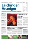 Jeden Mittwoch kostenlos in 11 100 Haushalten Mittwoch, 13. Januar 2010 Laichinger Anzeiger Die Wochenzeitung der Schwäbischen Zeitung für Laichingen Berghülen, Merklingen, Nellingen, Heroldstatt, Hohenstadt, Römerstein, Westerheim, Oberdrackenstein, Ingstetten und Justingen Fasnet Die närrische Zeit hat begonnen SCHELKLINGEN/ REGION (la) – Die Häser sind abgestaubt, die Narrenbäume stehen und die ersten Brauchtumsabende wurden bereits veranstaltet. In der Region finden nun zahlreiche Veranstaltungen und Umzüge statt, an denen wiederum Mitglieder der Narrenzünfte der Region teilnehmen. Kabarett „Volksdampf“ gastiert in Auhalle LAICHINGEN (la) - Die Vhs präsentiert die Kabarettgruppe „Volksdampf“, die am 16. Januar nach Berghülen kommt. Die drei Kabarettisten aus Oberschwaben gastieren am 16. Januar ab 20 Uhr in der Auhalle in Berghülen. Sie gehen unter anderem auch der Frage nach, ob ein Leben ohne Hirn möglich ist. Benefizkonzert Isabelle Ngnoubamdjum beeindruckt mit ihrer Stimme. Foto: arc Gospelmusik ist zu hören LAICHINGEN (la) – Pfarrer Reinhold Rampf war sofort begeistert von der Idee, das Gospelprojekt „SiYou“ nach Laichingen zu holen. Die Gruppe um die afroamerikanische Sängerin mit dem schwierigen Namen, Isabelle Ngnoubamdjum, für ein Konzert zu engagieren, war eine Idee von Rainer Pistora. Seine Veranstaltungsagentur aus Laichingen und die katholische Kirche haben das Programm zusammen organisiert. Die Erlöse aus dem Benefizkonzert sollen zugunsten der Neugestaltung der Kirche gehen. Es singen sowohl der katholische Kirchenchor als auch der Laichinger Chor „Pop and more“ im etwa 45 Minuten langen Vorprogramm. Vor der Kirche wird Kirchensekt ausgeschenkt, es gibt Glühwein, und ein Catering ist ebenfalls geplant. Insgesamt wird das Konzert drei Stunden dauern, schätzt Pistora. Zwischendurch gibt es eine 25-minütige Pause. Es treten auch zwei Überraschungsgäste auf, wovon der eine schon verraten werden darf, so Pistora: Die Westerheimer Sängerin Cornelia Ascher, die auch bei "Kunst und Kultur in L.A." aktiv ist, singt "Mein Traum", ein Stück, das Kai Kresse geschrieben hat. Mit Isabelle zusammen auf der Bühne stehen an dem Abend die Sänger Nicole Häußler und Ralf Damrath sowie Daniel O'Steen am Bass und Joe Fessele am Piano. Weiter auf Seite 3 Heute in der SZ Kletterwald und Höhle locken Gäste LAICHINGEN/WESTERHEIM/RE GION (la) – Am Wochenende beginnt die Touristikmesse CMT in Stuttgart. Dort vertreten sind auch Laichingen und Westerheim, gemeinsam mit anderen Gemeinden aus der Region am Stand des Alb-Donau-Kreises . Prospekte über die Vorzüge der Region sollen mehr Gäste auf die Alb locken. Altes Rathaus Hauptamt zeigt Film LAICHINGEN (la) – Das Hauptamt der Stadt Laichingen zeigt am Mittwoch, 20. Januar, im Alten Rathaus den Film „Azur und Asmar“. Beginn ist um 15 Uhr. Der Eintritt beträgt 1,50 Euro, Popcorn kann gekauft werden. Der Film ist ohne Altersbeschränkung freigegeben und dauert 100 Minuten. Zum Film: Es waren einmal zwei Jugendliche, Azur, der Sohn des Schlossherren und Asmar, Sohn der Amme, die beide wie Brüder großgezogen wurden. Eines Tages reißt das Schicksal die Beiden auseinander. Doch beide träumen von der Fee aus den Erzählungen ihrer Amme und begeben sich auf eine abenteuerliche Reise. Die Woche in der Schwäbischen Zeitung SZ-Rückblick ◆ LAICHINGEN - Das Gelbe Haus in Laichingen - braucht einen neuen Pächter. Seit Sonntag hat die Ratstube geschlossen. Die bisherigen Pächter, das Ehepaar Julia und Helder Lourenco, wollen sich beruflich neu orientieren. ◆ SUPPINGEN – Etwa 1000 Zuschauer haben an vier Aufführungstagen die Theatervorführung des SV Suppingen genossen. Mehr Informationen finden Sie jeden Morgen in der Schwäbischen Zeitung. Sie können ein kostenloses 14- tägiges Probeabonnement anfordern unter der Telefonnummer 0180/2008001. Anzeige