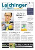 Jeden Mittwoch kostenlos in 11.500 Haushalten Mittwoch, 26. März 2014 Laichinger ANZEIGERaktuell Die Wochenzeitung der Schwäbische Zeitung für Laichingen, Berghülen, Merklingen, Nellingen, Heroldstatt, Hohenstadt, Römerstein, Westerheim, Oberdrackenstein, Ingstetten und Justingen Marktplatz 15 D-89150 Laichingen Telefon 07333/5433 zahnarzt-schleifer@t-online.de www.facebook.com/ZahnarztpraxisAmMarktplatzKSchleifer Ernährungsprofi Andreas Scholz spricht in Laichingen. FOTO: PR Wie Sie Ihr Wohlbefinden steigern Vortrag am 22. April im Auditorium der Volksbank Laichingen LAICHINGEN (la) - Andreas Scholz ist Ernährungswissenschaftler, Fachbuchautor und LOOX-Experte und zudem Dozent wie Referent. Am Dienstag, 22. April, ist er zu Gast im Auditorium der Volksbank Laichinger Alb und erklärt den Gästen, wie diese ihr Wohlbefinden steigern können. Sein Thema ist der Zusammenhang von Ernährung und Gesundheit. Sein Motto lautet: Das Wertvollste im Leben ist ein gesunder Körper. Der Eintritt zu dem Vortrag kostet fünf Euro, er kommt der Bürgerstiftung zugute. Das Gesundheitsreferat beginnt um 19 Uhr. Der Abend ist eine gemeinsame Veranstaltung der Volksbank, des Freizeitclubs Muskelkater in Feldstetten und der Schwäbischen Zeitung. GESUNDHEIT In Kooperation mit Zahngesund durch’s Jahr! Landfrauen versammeln sich LAICHINGEN (la) - Zur Hauptversammlung des Laichinger Landfrauen-Vereins im Gruppenraum sind am Mittwoch, 26. März, ab 20 Uhr alle Mitglieder eingeladen. Frühstückstreffen für Frauen LAICHINGEN (la) - Ein Gedanke ist, was gedacht worden ist oder das Denken an etwas – so nachzulesen bei Wikipedia. Das hilft Ihnen nicht weiter? Dann sollten Sie sich den Samstag, 5. April, freihalten. Beim Frühstückstreffen für Frauen geht es in Laichingen um die Macht der Gedanken. Die Daniel-Schwenkmezger-Halle öffnet um 8.15 Uhr. Startschuss für das Buffet ist um 8.30 Uhr. Heute in der SZ „Man muss nachrechnen, ob man noch fliegen darf“ – Für Laichinger Hobby-Piloten wird der Flugschein zur Belastung. Im Gegensatz zu anderen Vereinen auf der Laichinger Alb kennt der Flugsportverein eines nicht: Nachwuchssorgen. Dennoch gibt es auch bei den Fliegern Probleme. Insbesondere die strengen Regelungen bei der Gültigkeit der Flugscheine verderben Fliegern den Spaß am Flugsport. Nun hoffen die Piloten auf Hilfe. „Von den Bergen bis ans Meer!“ in Laichingen Reiseführer-Ausstellung in der Stadtbücherei LAICHINGEN (sz) - Das Regierungspräsidium (RP) veranstaltet vom 1. bis 17. April in der Stadtbücherei in Laichingen eine Ausstellung (zu den üblichen Öffnungszeiten). Ferien auf dem Bauernhof mit anderen Kindern? Oder doch lieber alleine als Familie, in einem Haus am Meer? Eine Hütte mieten? Oder ein Zeltplatz am See? Jedes Jahr stellen sich Familien gleiche Fragen: Wie verbringen wir unsere Ferien? Zur Anregung präsentiert das RP die Ausstellung mit 50 Reiseführern für Familien, die einen Überblick über schöne Reiseziele in Europa geben. SZ-Rückblick Die Woche in der Schwäbischen Zeitung LAICHINGEN (sz) - Stadt prüft Gerätehaus-Neubau für Wehr. Hauptversammlung der Laichinger Wehr mit Beförderungen und Blick in die Zukunft. HEROLDSTATT (sz) - Heroldstatter Jugendclub startet unter neuer Leitung. Der neue Vorsitzende Jürgen Frasch legt neues Konzept vor und wünscht sich mehr Mitstreiter. LAICHINGEN (sz) - Enderle wird Pfarrer in der Seelsorgeeinheit. Nachfolger für Pfarrer Rampf ist gefunden. Mehr Informationen finden Sie jeden Morgen in der Schwäbischen Zeitung. Sie können ein kostenloses 14-tägiges Probeabonnement anfordern unter der Telefonnummer 0180/2008001. ANZEIGE Fenster und Haustüren Bauherrenberatung Samstags von 7.30 - 14.00 Uhr Kostenlos und ganz unverbindlich. Verkauf nur über den Fachhandel. Wegen Umbau des Ausstellungsraumes, bitten wir um telefonische Anmeldung! KNEER GmbH · Fenster und Türen · Riedstraße 45 · 72589 Westerheim · Telefon 0 73 33/83-0 · Telefax 0 73 33/83-40 · Mail: info@kneer.de