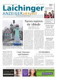 Laichinger ANZEIGERaktuell Die Wochenzeitung der Schwäbische Zeitung für Laichingen, Berghülen, Merklingen, Nellingen, Heroldstatt, Hohenstadt, Römerstein, Westerheim, Oberdrackenstein, Ingstetten und Justingen Jeden Mittwoch kostenlos in 12.500 Haushalten Mittwoch, 27. Januar 2016 Gespannt sein darf man auf den Beitrag der Rekruten des Jahrgangs 1995/96, die das Fasnetsblätte erneut verkaufen. Sie haben die Westerheimer Fasnet bereits mit ihrer Fasnetshexe bereichert. FOTO: HJS Narren regieren die Albhalle Bürgerbälle der IGF steigen mit Urgestein WESTERHEIM (hjs) - Noch sind ausreichend Karten für die beiden Bürgerbälle der Interessengemeinschaft Fasnet Westerheim (IGF) zu haben, die am Freitag und Samstag, 29. und 30. Januar, jeweils ab 20 Uhr in der Albhalle stattfinden. Die Verantwortlichen der IGF versprechen ein pfiffiges und unterhaltsames Programm. In dem bunten Showprogramm sind auch zwei unlängst prämierte Gruppierungen der IGF zu sehen: die Garde, die beim 18. Show- und Gardetanzwettbewerb einen zweiten Platz geschafft hat, sowie die Maskengruppe der „Hellstera- Male“, die mit ihrem Brauchtumstanz beim ADR-Ball ebenfalls einen zweiten Rang erreichten. Die Schalmeien werden die Bürgerbälle mit einigen Musikstücken eröffnen und die Kinder- und Jugendgarde mit ihren Beiträgen das närrische Treiben bereichern. Es folgen jede Menge Sketche und Showeinlagen, wobei die IGF-Sänger das Vereinsleben und das kommunalpolitische Geschehen im Flecka durch die Narrenbrille besingen. In die Bütt steigen Klaus Ascher und Elisa Fischer zusammen mit Steffen Schmid, die beide mit viel Charme und Witz durch das Programm führen wollen. Als Überraschung an den Abenden wird auch ein Urgestein der Westerheimer Fasnet sein Comeback geben... Karten zu acht Euro sind zu haben bei Elisabeth Walter unter Telefon 07333 / 6558 und an der Abendkasse. „Starke Frauen von der Alb“ LAICHINGEN (la) - Eberhard Schanbacher hält am Donnerstag, 28. Januar, einen Vortrag über „die drei Schwestern Schweizer“ und einen ihrer Söhne, August Enderle. Er beginnt um 19.30 Uhr im Alten Rathaus in Laichingen. Alle drei waren künstlerisch hochbegabt. „Rechtsterror im Ländle“ LAICHINGEN (la) - Grünen- Landtagsabgeordneter Jürgen Filius spricht am Mittwoch, 27. Januar, um 20 Uhr im Laichinger Rössle über „Rechtsterror im Ländle“. Wie verwurzelt ist der Rechtsterror bei uns? Damit beschäftigt sich Filius als Obmann im NSU-Untersuchungsausschuss. Heute in der SZ HEROLDSTATT (sz) - An der Grund- und Werkrealschule Heroldstatt sind bei fünf Schülern Kopfläuse aufgetreten. Die betroffenen Kinder besuchen die Grundschulbetreuung, so dass sich vermutlich dort die Kopfläuse ausgebreitet haben. Zunächst war nur ein Kind betroffen. Das Gesundheitsamt des Landratsamts ist informiert und die Eltern sind über ein Merkblatt um Mithilfe gebeten worden, damit sich die Läuse nicht weiter ausbreiten. Coole Chansons und Kabarett Lucy van Kuhl gastiert am Samstag, 30. Januar, im „Fröhlichen Nix“ BLAUBEUREN (la) - Lucy van Kuhl verbindet bei ihrem Konzert am Samstag, 30. Januar, um 20 Uhr in der Kleinkunstkneipe Zum fröhlichen Nix „exzellentes Klavierspiel mit kabarettistischem Gesang“ und begleitet sich an der eigentlich lustigen Ukulele zur Abwechslung zwischendurch auch mal bei ernsten Liedern. Unter dem Motto „Fliegen mit Dir“ kommentiert sie in Wort und Musik typische Alltagssituationen, Menschliches und Absurdes. Der Eintritt kostet 13 Euro. SZ-Rückblick Die Woche in der Schwäbischen Zeitung LAICHINGEN (sz) - Windradfirma verspürt Rückenwind. Gutachten entkräftet Argumentation des Deutschen Wetterdienstes. WESTERHEIM (sz) - Familiäre Alternative zum Kindergarten. Tagesmutter Melanie Striebel aus Westerheim gewährt Einblick in ihren Alltag. LAICHINGEN (sz) - Oscarreife Stadtkapelle. Laichinger Musiker überzeugen bei Jahreskonzert mit Wagner und Filmmusik. Mehr Informationen finden Sie jeden Morgen in der Schwäbischen Zeitung. Sie können ein kostenloses 14-tägiges Probeabonnement anfordern unter der Telefonnummer 0751 / 2955 5555. ANZEIGE Fenster und Haustüren für angesagte Singles! Bauherrenberatung Samstags von 7.30 - 14.00 Uhr Kostenlos und ganz unverbindlich. Verkauf nur über den Fachhandel. Neue Ausstellung! KNEER GmbH · Fenster und Türen · Horst-Kneer-Straße 1 · 72589 Westerheim Tel. 0 73 33/83-0 · Fax 0 73 33/83-40 · info@kneer.de