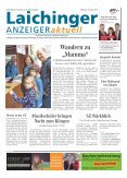 Laichinger ANZEIGERaktuell Die Wochenzeitung der Schwäbische Zeitung für Laichingen, Berghülen, Merklingen, Nellingen, Heroldstatt, Hohenstadt, Römerstein, Westerheim, Oberdrackenstein, Ingstetten und Justingen Jeden Mittwoch kostenlos in 12.000 Haushalten Mittwoch, 29. April 2015 Top Service hat bei uns Tradition. Zum 5. Mal Audi Top Service Partner FrühjahrsCheck 19,– €* Wanderspaß für die ganze Familie. FOTO: SU Wandern zu „Mamma“ Erlebniswandertour am 1. Mai ist der Venus vom Hohlen Fels gewidmet BLAUBEUREN (sz) - „Komm zu Mamma“ lautet das Motto des 34. Erlebniswandertages am Freitag, 1. Mai. Das Motto bezieht sich auf die Venus vom Hohlen Fels bei Schelklingen, die älteste figürliche Darstellung der Welt. Da das Urmu in diesem Jahr sein 50-jähriges Bestehen feiert, greift der Förderverein des Lionsclubs Blaubeuren-Laichingen das Motto des Museums auf, um den Wanderern eine abwechslungsreiche Wanderstrecke rund um die Urgeschichte anzubieten. Die elf Kilometer lange Rundwanderung führt vom Blautopf aus zum Urgeschichtlichen Museum und dem, im benachbarten Bolegeschen Haus, stattfindenden Lions- Flohmarkt. Von dort geht es weiter zur Brillenhöhle und vorbei an der Ruine Günzelburg. Auf der Albhochfläche angekommen, führt der Weg zum ehemaligen Skilift in Seissen, dem heutigen Höfohaus des Höhlenvereins Blaubeuren. Anschließend steigen die Wanderer zur Altstadt Blaubeurens ab. In der Stadt führt der Weg wieder zurück zum Blautopf. Im Urmu haben die Wanderer am 1. Mai freien Eintritt und können einen Blick in die Urgeschichte werfen. Starten können die Wanderer zwischen 8 und 15 Uhr am Blautopf, wo es auch die Wanderpässe zu kaufen gibt. Für Kinder bis zu zehn Jahren ist die Teilnahme kostenlos. Autohaus Burger Autohaus Burger GmbH & Co. KG Ehinger Straße 21–25, Blaubeuren Tel. 0 73 44/96 00-50 www.autohaus-burger.de *mehr Informationen auf unserer Homepage Kasperle kommt LAICHINGEN (la) - Das reisende Puppentheater „Kasperle im Abenteuerland“ gastiert vom Samstag, 2., bis zum Montag, 4. Mai, bei der Zuckerbuche in Laichingen. Kinder und Familien dürfen sich auf ein neues Abenteuer vom Kasperle freuen. Vorstellungen sind täglich um 16 Uhr. Über Hildegard von Bingen LAICHINGEN (la) - Beim ökumenischen Seniorennachmittag in Laichingen am Dienstag, 5. Mai, ab 14 Uhr wird Bärbel Sautter über Kräuter und Heilkräuter nach Hildegard von Bingen sprechen. Die Andacht hält Pfarrer Karl Enderle. Es finden auch Anmeldungen zum Ausflug im Juni statt, Ziel und Einzelheiten erläutern Margit Röcker und Sybille Teubl. Heute in der SZ LAICHINGEN (sz) - Erst am 19. Juli – und nicht Mitte Juni – soll die Machbarkeitsstudie zu einem möglichen Bahnhalt bei Merklingen vorliegen. Dies hat das Landratsamt des Alb-Donau-Kreises am Dienstag mitgeteilt. Grund sei, dass die mit der Erstellung der Studie beauftragten Büros noch immer warten würden auf notwendige Daten seitens der Nahverkehrsgesellschaft des Landes und der Bahn. Diese weißt den Vorwurf zurück. Musikschüler bringen Nacht zum Klingen Musikschulnacht am 9. Mai LAICHINGEN (la) - Zum sechsten Mal seit 2010 präsentiert sich die Musikschule Blaubeuren-Laichingen-Schelklingen mit ihrer Musikschulnacht. Sie findet am Samstag, 9. Mai, im Blaubeurer Joachim-Hahn- Gymnasium statt. Beginn ist um 18 Uhr, der Eintritt frei. Zirka 100 Musikschüler sowie Gäste und Freunde der Musikschule musizieren abwechselnd auf zwei Bühnen. Die Veranstaltung wird in etwa vier Blöcken ablaufen. Zwischen den Blöcken gibt es Pausen, in denen Zeit bleibt für Gespräche oder einen Imbiss. SZ-Rückblick Die Woche in der Schwäbischen Zeitung LAICHINGEN (sz) - Ladakh verschont, Knupfers erleichtert. Laichinger Zahnarztehepaar hilft Kindern im Himalaya - Beben verlief südlicher. NELLINGEN (sz) - Nellingen zeigt Wirtschaftsstärke. 52 Firmen locken allerhand Menschen auf die Alb - auch von weiter her. LAICHINGEN (sz) - Auch Aleviten erinnern an Völkermord. Beim Fest der Kulturen stehen aber Kultur und Integration im Vordergrund. Mehr Informationen finden Sie jeden Morgen in der Schwäbischen Zeitung. Sie können ein kostenloses 14-tägiges Probeabonnement anfordern unter der Telefonnummer 0180/2008001. ANZEIGE Fenster und Haustüren für zurück gekehrte Weltenbummler! Bauherrenberatung Samstags von 7.30 - 14.00 Uhr Kostenlos und ganz unverbindlich. Verkauf nur über den Fachhandel. Neue Ausstellung! KNEER GmbH · Fenster und Türen · Riedstraße 45 · 72589 Westerheim Tel. 0 73 33/83-0 · Fax 0 73 33/83-40 · info@kneer.de