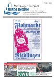 Mitteilungsblatt der Stadt Riedlingen KW 20 /19 Mittwoch, 15. Mai 2019 | 2 AMTS- UND SPRECHTAGE DER VERWALTUNG Rathaus Riedlingen Telefon 07371/183-0 Mo. - Do. 8 - 12 Uhr, Do. 14 - 18 Uhr, Fr. 8 - 12.30 Uhr Rathaus Daugendorf Telefon 07371/2424 Di. 18.00 Uhr – 20.00 Uhr Rathaus Grüningen Telefon 07371/7386 Di. 18.30 - 20 Uhr, weitere nach Vereinbarung Rathaus Neufra Telefon 07371/6334 Mi. 18.30 - 19.30 Uhr Rathaus Pflummern Telefon 07371/8416 Do. 19 - 21 Uhr, weitere nach Vereinbarung Rathaus Zell Telefon 07373/1420 Do. 19 - 20 Uhr, weitere nach Vereinbarung Rathaus Zwiefaltendorf Telefon 07373/2837 Mi. 19.30 - 21 Uhr, weitere nach Vereinbarung ÖFFNUNGSZEITEN STÄDTISCHER EINRICHTUNGEN Fundbüro im Rathaus Riedlingen, Telefon 183-39 Offene Jugendarbeit: Tel. 07371/934485, Büro Schlachthausstraße 3 oder unter oja-riedlingen@hausnazareth.de erreichbar Lehrschwimmbecken, Tel. 8078; Mi. 19 - 20 Uhr, 20 - 21 Uhr, Do. 20 - 21 Uhr, Fr. 20 - 21 Uhr, Sa. 15 - 18 Uhr Stadtbibliothek Kapuzinerweg 2, Telefon 8094: Di. 14.30 - 19 Uhr, Mi. 14.30 - 17 Uhr, Do. 14.30 - 18 Uhr, Fr. 10 - 13 Uhr Feuerwehrmuseum Mühlgasse 17: Samstag/Sonntag 14 - 17 Uhr Museum Schöne Stiege/Städt. Galerie Spital z. Hl. Geist: Museum Schöne Stiege: Städtische Galerie Spital z. Hl. Geist: Fr. + Sa. 15 - 17 Uhr, So. 14 - 17 Uhr Führungen nach Vereinbarung jederzeit möglich unter 07371 909633 (dienstags) oder info@museum-riedlingen.de UMWELTECKE Müllabfuhrtermine: Die Müllabfuhrtermine entnehmen Sie bitte künftig dem Abfuhrkalender. Dieser liegt im Rathaus zur Abholung bereit. Grüngut: Annahmeplatz am bisherigen Wertstoffhof Riedlingen; Öffnungszeiten: März - Nov.: Mittwoch, 16 - 19 Uhr, Samstag, 11 - 14 Uhr; Dez. - Feb.: Samstag 11 - 14 Uhr Altglascontainer Standorte: Riedlingen: Zwiefalter Straße, Daimlerstraße, Zollhauserstraße, Alte Unlinger Straße; Grüningen: Ammelhauser Straße, Neufra: Gewerbegebiet Rauhe Wiesen; Pflummern: Gemeindehaus, Zwiefaltendorf: bish. Wertstoffhof Unlingen Recyclingzentrum - Öffnungszeiten: Mo./Mi./Fr. 9 - 12 Uhr, 13 - 17 Uhr, Di./Do. 13 - 17 Uhr, Sa. 9 - 12 Uhr TELEFON-NOTRUFE Feuerwehr 112 Rettungsdienst 112 oder 192 22 Notarzt 112 Polizei-Notruf (jeweils ohne telefonische Vorwahl) 110 Polizeirevier Riedlingen 07371/9380 Krankentransporte 07351/19222 Sana Klinik 07371/1840 Wasserversorgung Riedlingen 07371/18327 Kläranlage Riedlingen 07371/3590 Gasstörungsstelle 0800/0824505 SONSTIGE Dienstzeiten des Landratsamtes Biberach Außenstelle Riedlingen, Krankenhausweg 3 KFZ-Zulassungsbehörde: Telefon 07351/52-6887 oder -6888, Fax 07351/52-6839 Straßenamt: Telefon 07351/52-6824; Fax 07351/52-6828 Kreissozialamt: Telefon 07351/52-6870 oder -6876; Fax 07351/52-6889 Jugendamt Riedlingen, Zwiefalter Straße 56 A Sozialer Dienst, Telefon 07351/52-7623; Fax 07351/52-7627 Finanzamt: Telefon 07351/590 Sozialstation Riedlingen, Alten- und Krankenpflege Telefon 07371/932020, Riedlingen, St.-Gerhard-Straße 16 Seniorengenossenschaft Riedlingen e. V. Vorsitzender Josef Martin, Telefon 07371/8394 Tagespflege: Stadtgraben, Telefon 07371/923170 Essen auf Rädern: Telefon 07371/4478 699 Deutsches Rotes Kreuz: Sprechzeiten: Di. 14 - 16 Uhr, Do. 10 - 12 Uhr - Büro in Biberach Telefon 07351/157024 Katholische Kirchengemeinde St. Georg Nachbarschaftshilfe Telefon/Fax 07371/9320-20, oder 3662 Tafelladen (Träger: Deutsches Rotes Kreuz): Jeden Samstag von 11.00 Uhr bis 12.30 Uhr, jeden Mittwoch ab 12.00 Uhr. Unvorhergesehene Änderungen werden am Tafelladen angeschlagen. Ansprechpartner: Hans Petermann, Zur Donaubrücke 9, 88499 Riedlingen-Zwiefaltendorf, Tel. 0 73 73 / 92 16 504, Mobil 0 151 / 12 13 16 34 Freundeskreis Freunde für Fremde Begegnungscafé für Einheimische und Flüchtlinge: Termin siehe unter der Rubrik „Vereine“ Ansprechpartner für den Freundeskreis Freunde für Fremde: Tel. 07371/18337 ÄRZTE/APOTHEKENNOTDIENSTE Ärztlicher Bereitschaftsdienst: Tel: 116 117 Kinderärztlicher Notdienst: 0180 / 1929343 Augenärztlicher Notdienst: 0180 / 1929350 Zahnärztlicher Notdienst: 01805 / 911650 Apothekennotdienst: 0800 / 0022833 Mitteilungsblatt der Stadt Riedlingen lmpressum Herausgeber: Stadt Riedlingen Verantwortlich für den redaktionellen Teil: Bürgermeister M. Schafft Für den Anzeigenteil: Ulrich’sche Buchdruckerei und Verlag GmbH & Co. KG, Haldenstraße 6+8, 88499 Riedlingen. Redaktion: Bürgermeisteramt Riedlingen, Rathaus, Marktplatz 1, 88499 Riedlingen, Telefon (MBL) 07371/18312, Fax (MBL) 07371/18355, E-Mail: cbarth@riedlingen.de Öffnungszeiten: Mo bis Do. 8 bis 12 Uhr Do. nachmittag 14 bis 18 Uhr, Freitag 8 bis 12.30 Uhr Redaktionsschluss: Freitag 10 Uhr, beim Sekretariat des Bürgermeisters, Rathaus, 1. OG, Zimmer 103. Erscheinungsweise: wöchentlich am Mittwoch (Regelfall) Verlag, Anzeigenverkauf, Herstellung & Vertrieb: Ulrich’sche Buchdruckerei und Verlag GmbH & Co. KG, Haldenstraße 6+8, 88499 Riedlingen, Tel. 0 73 71/93 72 21, Fax 07 51/29 55-99-84 99 E-Mail: anzeigen.riedlingen@schwaebische.de Layout & Gestaltung: Druck und Verlag Wagner, Kornwestheim Verteilung an alle Haushaltungen im Bereich der Stadt Riedlingen und der Teilorte Bechingen, Daugendorf, Grüningen, Neufra, Pflummern, Zell, Zwiefaltendorf