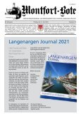 Freitag, 11. Juni 2021 MONTFORT BOTE 5 Gemeindenachrichten Corona-Schnelltests im Testzentrum in Langenargen Testzeiten am Wochenende Folgende Testzeiten sind ab Freitag, 11.06.2021 im Testzentrum in der Kleinen Turnhalle geplant: Freitag, 11.06.2021, 10:00 Uhr bis 12.00 Uhr und 16.00 Uhr bis 18:30 Uhr Samstag, 12.06.2021, 8.30 Uhr bis 12.00 Uhr Sonntag, 13.06.2021, 9.00 Uhr bis 12.00 Uhr Eine detaillierte Terminübersicht der aktuellen Termine finden Sie wie gewohnt unter www.montfort-apotheke.de. Zusätzlich wird am Sonntag, 13.06.2021 von 10:00 – 14:00 Uhr ein mobiles Testteam am Zollhaus, Obere Seestraße zu finden sein. Hier ist keine vorherige Terminbuchung notwendig. Testen lassen können sich alle Personen, die keine Symptome einer Erkrankung aufweisen. Wenn Sie sich krank fühlen, wenden Sie sich bitte direkt an ihren Hausarzt. Um einen Termin zu vereinbaren müssen Sie sich vorab online registrieren. Unter www.montfort-apotheke.de können Sie sich Ihren Wunschtermin aus den vorgegebenen freien Zeiten auswählen und erhalten eine Terminbestätigung. Termine können auch kurzfristig vereinbart werden. Zum Termin müssen Sie Ihre Anmeldebestätigung mit zugehöriger Datenschutzerklärung in Papierform sowie ein Ausweisdokument mitbringen. Weiterhin wird zusätzlich in der Praxis Ärzte am Münzhof in Langenargen getestet. Nähere Informationen hierzu erhalten Sie direkt bei der Praxis. Trotz der Schnelltestmöglichkeit müssen natürlich in allen Bereichen weiterhin die bestehenden AHA-Regeln eingehalten werden. Sozialer Fahrdienst fährt wieder in gewohntem Umfang Der Soziale Fahrdienst Langenargen ist ein Angebot für Seniorinnen und Senioren aus Langenargen ab 70 Jahren und hilfsbedürftigen Personen (mit Schwerbehindertenausweis), die keine andere Möglichkeit haben, ihre Ziele zu erreichen. Über die Hotline 07543/9330-70 können Sie nun wieder wie gewohnt den Fahrdienst anfragen. Mitteilung der Stiftung Hospital zum Heiligen Geist Das Altenpflegeheim Hospital zum Heiligen Geist bietet Ihnen seit Mai den neuen Dienst „Essen auf Rädern“. Nähere Informationen erhalten Sie Mo.-Fr. Mitteilung von der Stiftung 9:00 Uhr- Hospital 11:00 zum Heiligen Uhr telefonisch Geist unter der Tel.-Nr.: 07543/9327-40 (Fr. Carl) oder per Email: service@ hospital-langenargen.de. Das Altenpflegeheim Hospital zum Heiligen Geist bietet Ihnen seit Mai den neuen Dienst „Essen auf Rädern“. Endlich wieder vor Ort musizieren! Nähere Informationen erhalten Sie MO-FR von 9:00 Uhr- 11:00 Uhr telefonisch unter der Tel.-Nr.: 07543-9327-40 (Fr. Carl) oder per Email: service@hospital-langenargen.de. Seit dieser Woche ist die Freude bei den Schülerinnen und Schülern mit ihren Lehrkräften der Musikschule Langenargen besonders groß: mit den sinkenden Inzidenzzahlen darf der Präsenzunterricht in allen Unterrichtsfächern mit dem Nachweis eines negativen Corona-Tests, Impf- oder Genesenen-Nachweises endlich wieder stattfinden. Nach langen Wochen im Online-Unterricht war es nun für alle eine große Erlösung, wieder in der Musikschule in Präsenz musizieren zu dürfen. Ebenso sind auch die ersten Ensembleproben wieder möglich und so ist die Hoffnung groß, sich noch vor den Sommerferien mit dem ein oder anderen Auftritt in der Öffentlichkeit zu zeigen. Ende des Amtlichen Teils Annika Paust freut sich über ihren Trompetenunterricht in der Musikschule. Bild: Florian Keller Baby Musikgarten startet wieder Nach dem langen Lockdown darf nun endlich wieder der beliebte Baby-Musikgarten ab Donnerstag, 10.06.2021 mit Frau Zimmermann starten. Es sind noch einige Plätze frei. Die verschiedenen Altersgruppen starten um • 09.00 Uhr Babymusikgarten ab 12 Monate • 10.00 Uhr Babymusikgarten ab 6 Monate • 11.00 Uhr Babymusikgarten ab 18 Monate Der Eintritt in die Musikschule kann aktuell für Erwachsene nur mit dem Nachweis eines negativen Corona-Tests (nicht älter als 24h), Impf- oder Genesenen-Nachweises erfolgen. Babys und Kinder bis zum vollendeten 6. Lebensjahr sind von der Testpflicht ausgenommen. Anmeldungen bitte via E-Mail an maucher@musikschulelangenargen.de. Weitere Fragen können gerne an die Musikschulleitung (07543-931812 oder info@musikschule-langenargen.de) gerichtet werden. Hinweis auf Beflaggung am Rathaus Am Donnerstag, 17. Juni 2021 und am Sonntag, 20. Juni 2021 wird das Rathaus jeweils mit der Deutschlandflagge beflaggt. Am Donnerstag, 17. Juni 2021 wird das Rathaus aufgrund des Jahrestags des Volksaufstands in der DDR beflaggt. Der Volksaufstand am 17. Juni 1953 ist die erste Massenerhebung im Machtbereich der Sowjetunion. Eine Million Menschen demonstrierten in der DDR für Demokratie und Freiheit. Die Kundgebungen wurden schließlich von sowjetischen Panzern aufgelöst. Über 50 Menschen wurden getötet, Hunderte schwer verletzt, Tausende zu Haftstrafen verurteilt. Das Bundeskabinett hat im Jahr 2015 beschlossen, dass jährlich am 20. Juni an die weltweiten Opfer von Flucht und Vertreibung sowie insbesondere an die deutschen Vertriebenen gedacht wird. Am Sonntag, 20. Juni 2021 wird das Rathaus aufgrund dieses Gedenktages mit der Deutschlandflagge beflaggt. Anschlussunterbringung: Wohnraum gesucht Nach Abschluss der Asylverfahren ist jede Kommune für die Anschlussunterbringung der Geflüchteten verantwortlich. Für die Gemeinde Langenargen bedeutet das, dass noch weiterer Wohnraum bereitgestellt werden muss. Durch den möglichen Anspruch auf Familiennachzug kann sich die Zahl der zu Unterbringenden zudem erhöhen. Wir suchen deshalb weiterhin Wohnungen und Häuser zur langfristigen Anmietung und bitten um Ihre Mithilfe. Wenn Sie über eine entsprechende Immobilie verfügen und bereit sind, diese der Gemeinde für die Anschlussunterbringung zur Verfügung zu stellen, setzen Sie sich bitte mit dem Amt für öffentliche Sicherheit und Ordnung, Herrn Vieweger, Tel.: 07543/9330-16 oder E-Mail: vieweger@langenargen.de in Verbindung.
